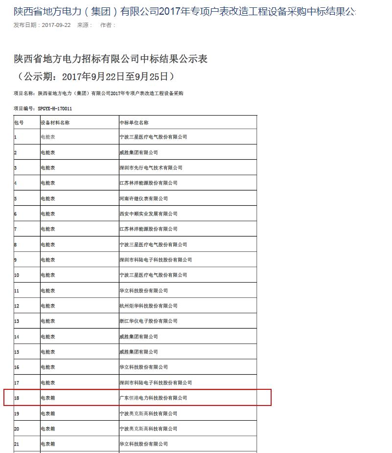 2017年專項(xiàng)戶表改造工程設(shè)備采購(gòu)項(xiàng)目中標(biāo)結(jié)果公示表
