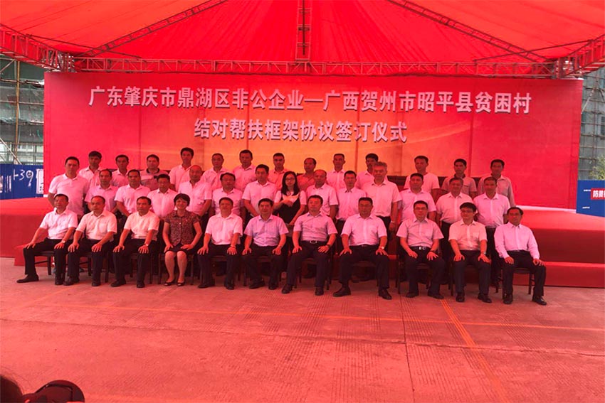 我司代表與鼎湖區(qū)各企業(yè)代表、鼎湖區(qū)政府部門(mén)于6月20日到廣西昭平縣深度貧困村簽訂對(duì)口幫扶協(xié)議,在人才支援、資金支持、勞務(wù)協(xié)作、就業(yè)培訓(xùn)、產(chǎn)業(yè)項(xiàng)目、教育醫(yī)療等方面的重點(diǎn)幫扶。