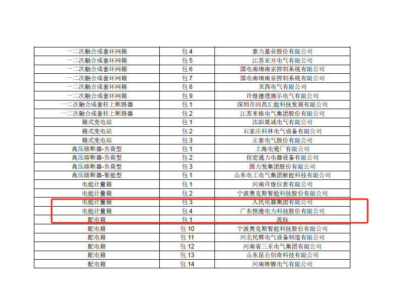 2024年11月29日 國網四川省電力公司傳來捷報,廣東恒港電力科技股份有限公司中標“國網四川省電力公司 2024 年第二次配網物資協議庫存招標采購項目”項目電能計量箱分標。恒港公司一直持著“客戶至上、質量第一”的經營理念,為客戶提供更加優質的產品和服務。讓我們繼續攜手共進,再奪佳績!!!