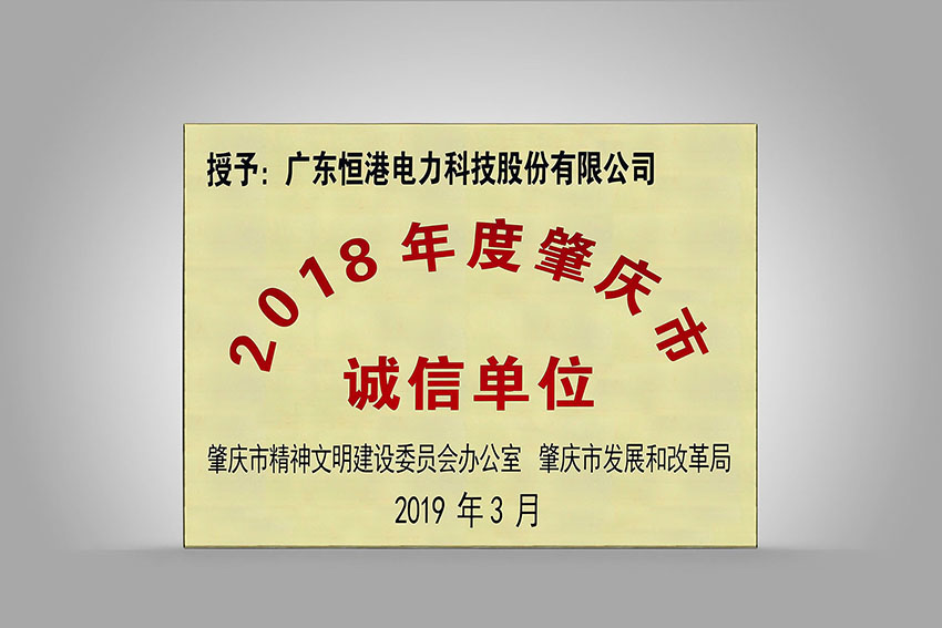 2018年度肇慶市誠(chéng)信單位牌扁